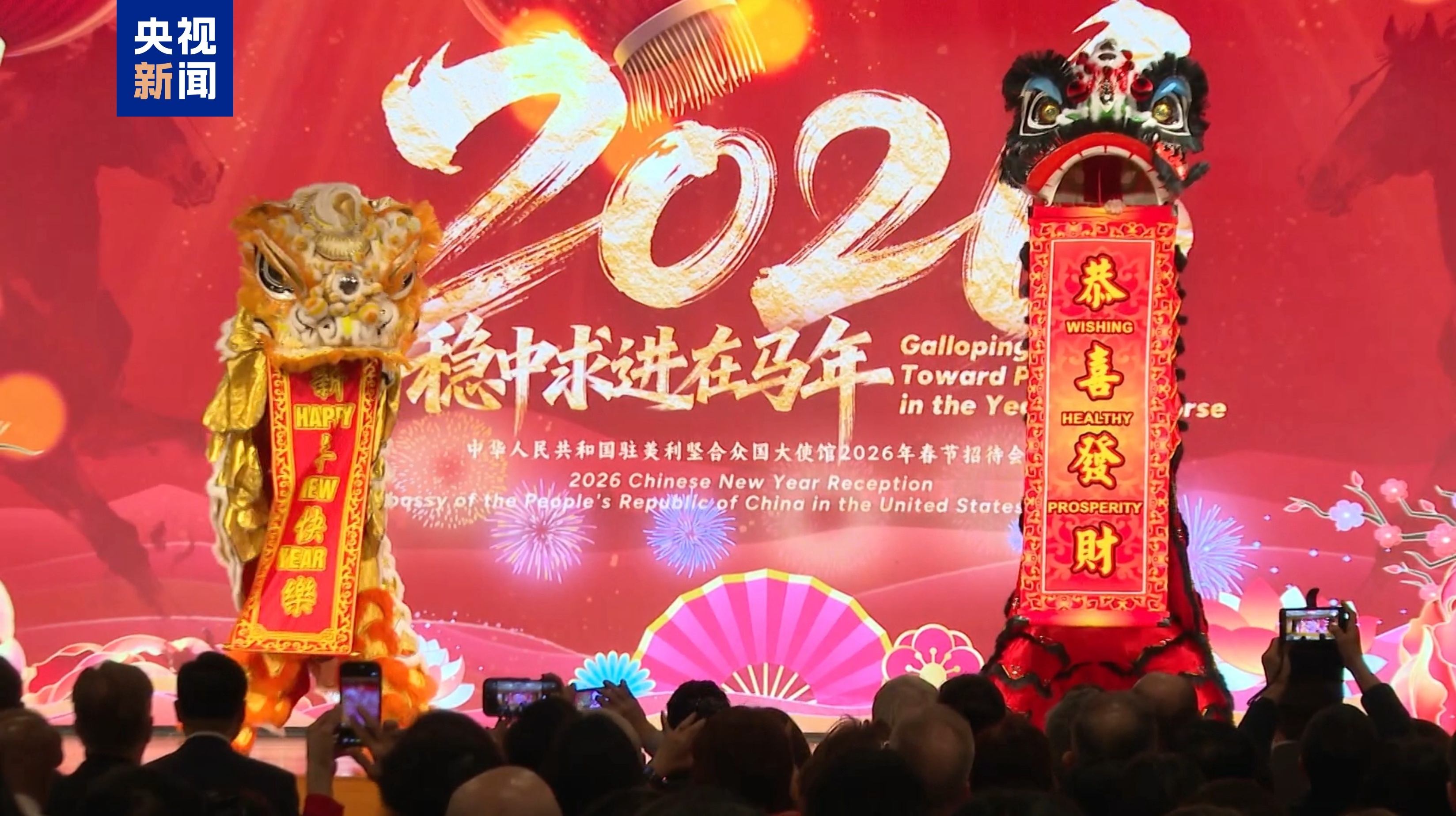 招待会现场还举行了舞狮及“欢乐春节”专场音乐会。来宾们共同观看了《元首引领 行稳致远》主题视频,盛赞中国发展成就,期盼中美关系稳定发展。